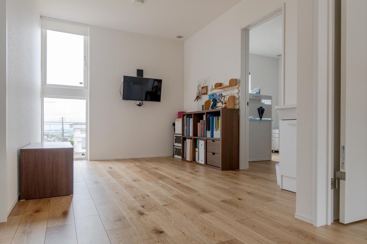 2階はフリースペースを囲むように主寝室と子ども部屋3部屋を配置しています。