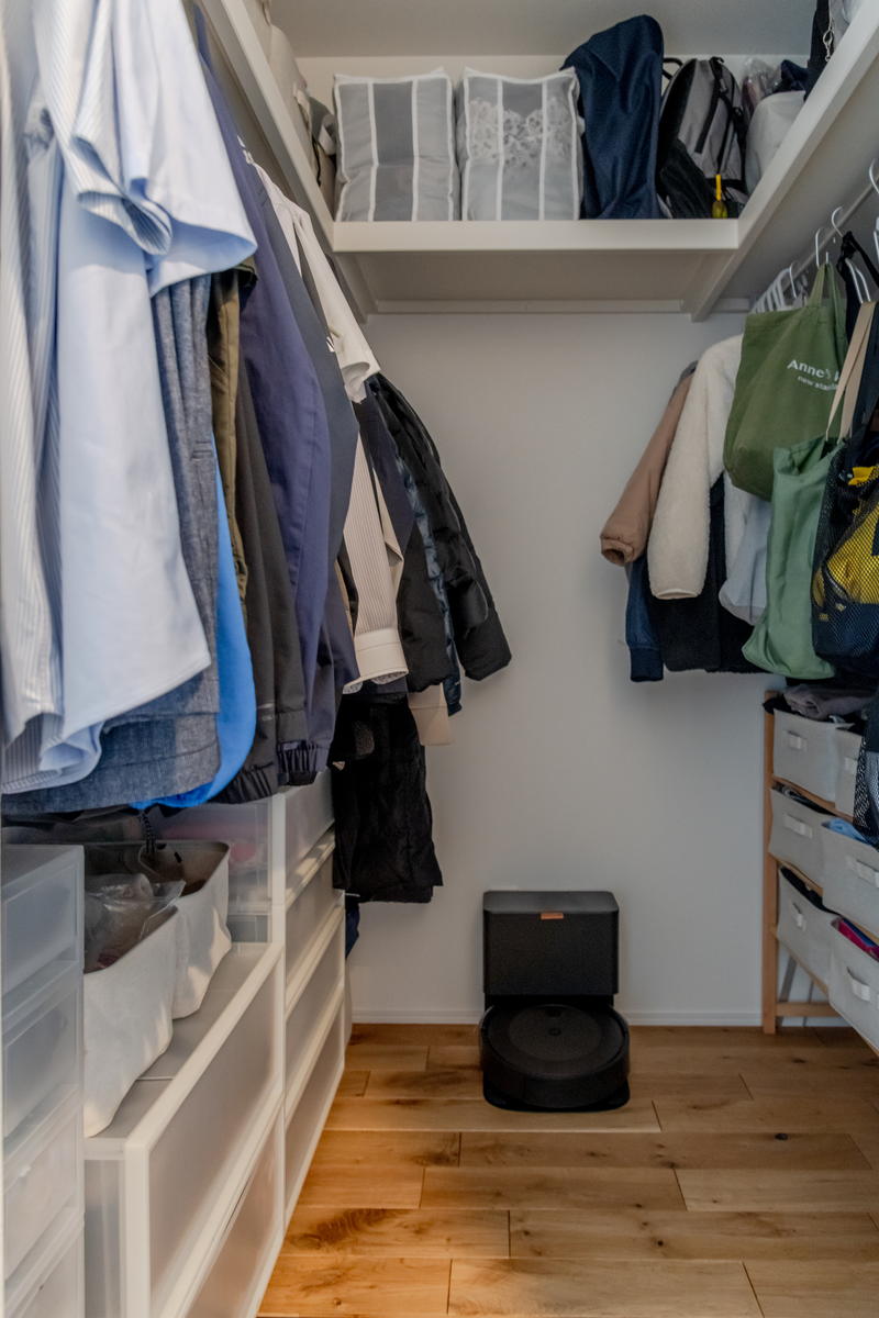 朝、洗濯乾燥機のタイマーをセットし、帰宅したらフカフカに乾いた衣類をクローゼットにしまうだけ。洗濯物を分けたり、2階に運んだりする手間が省け、家事の時短が実現しました。